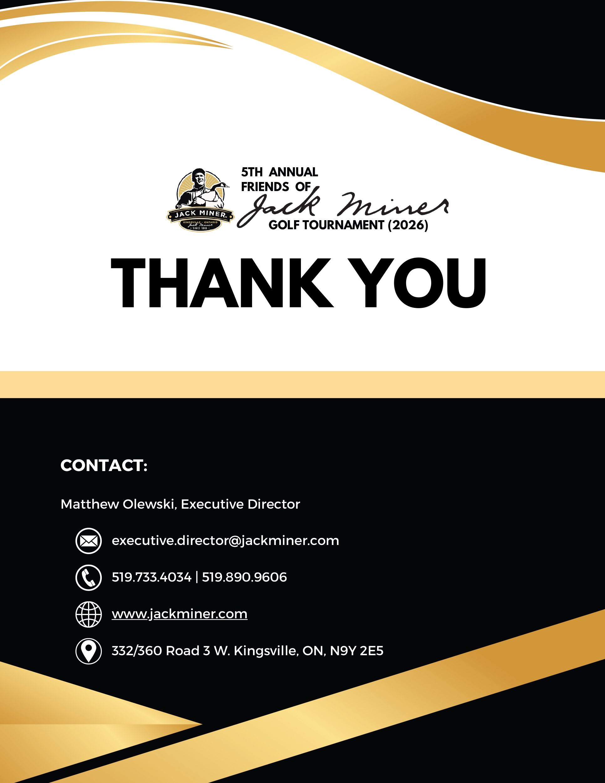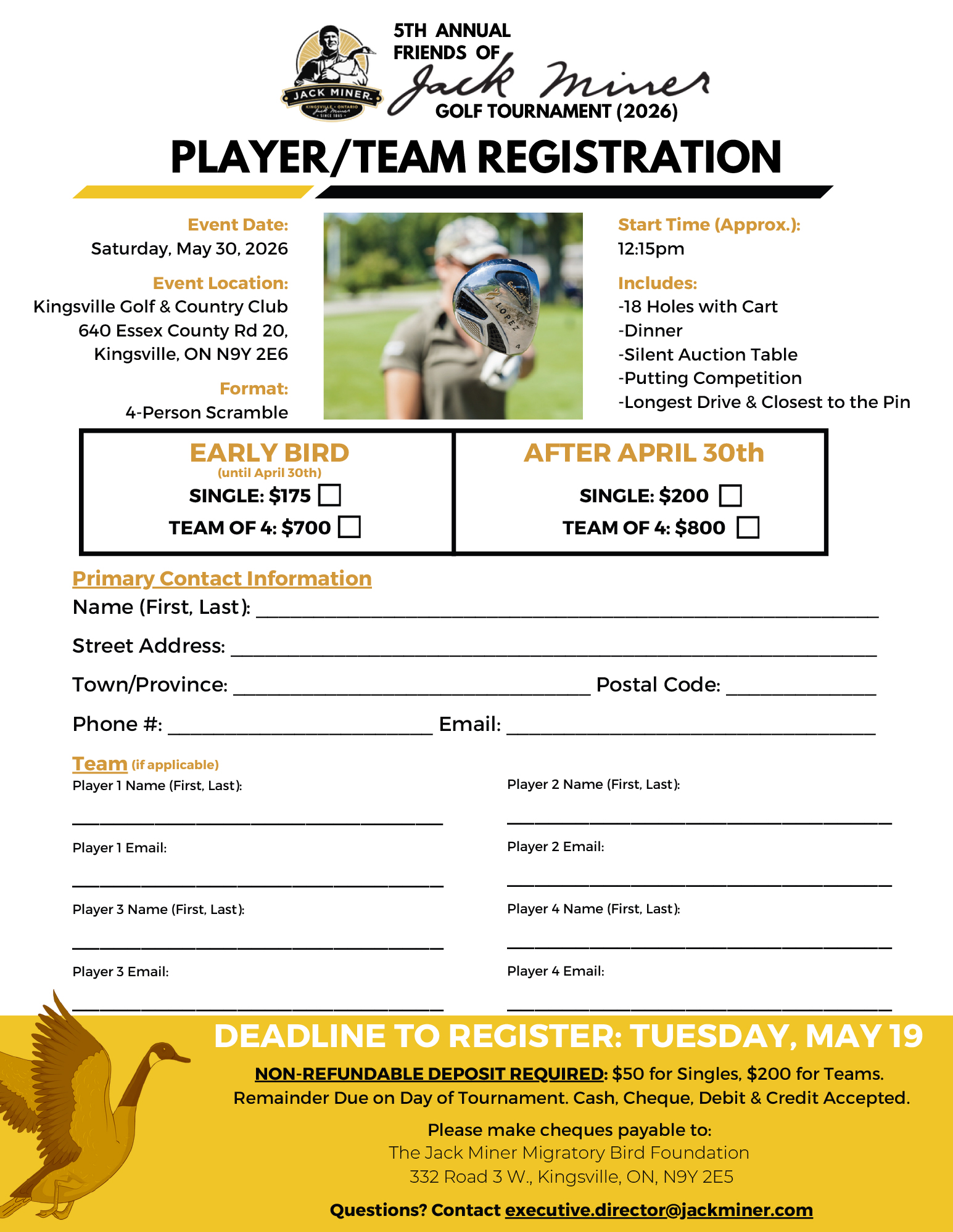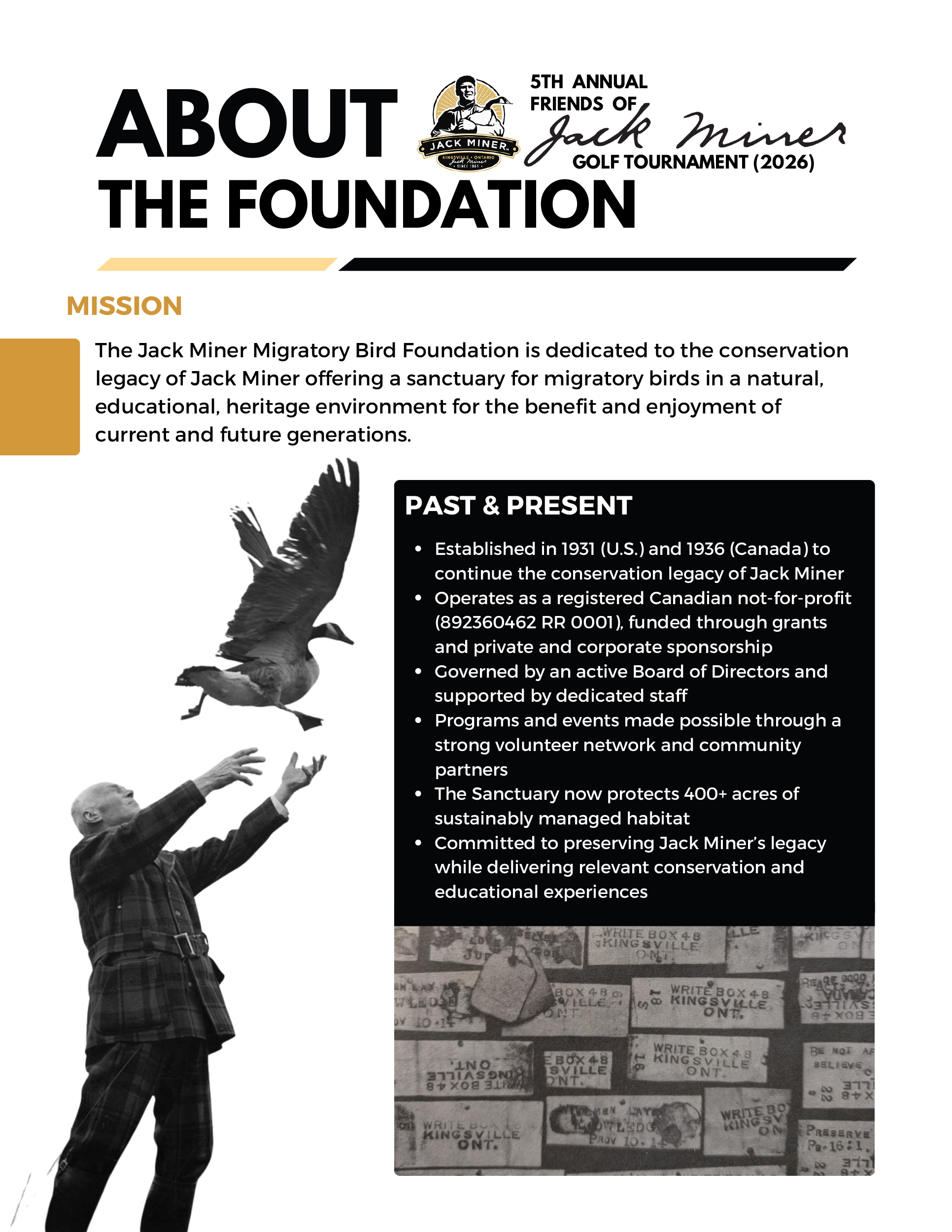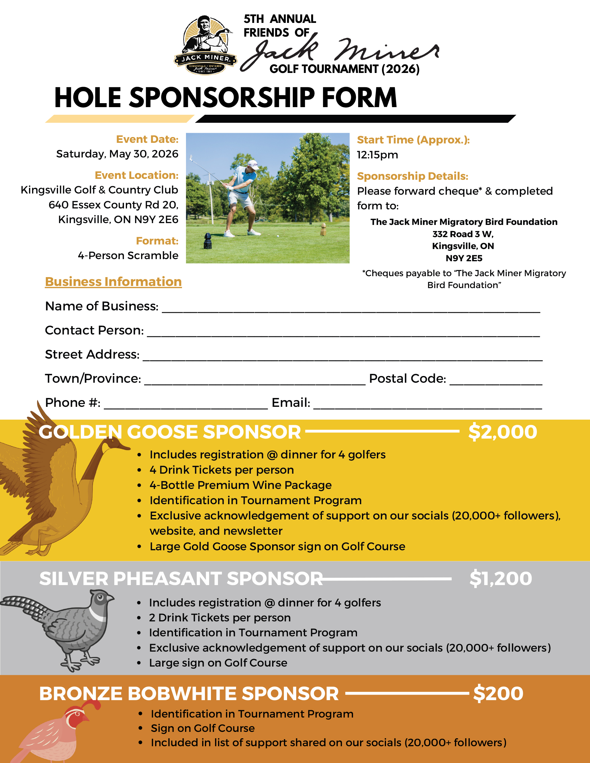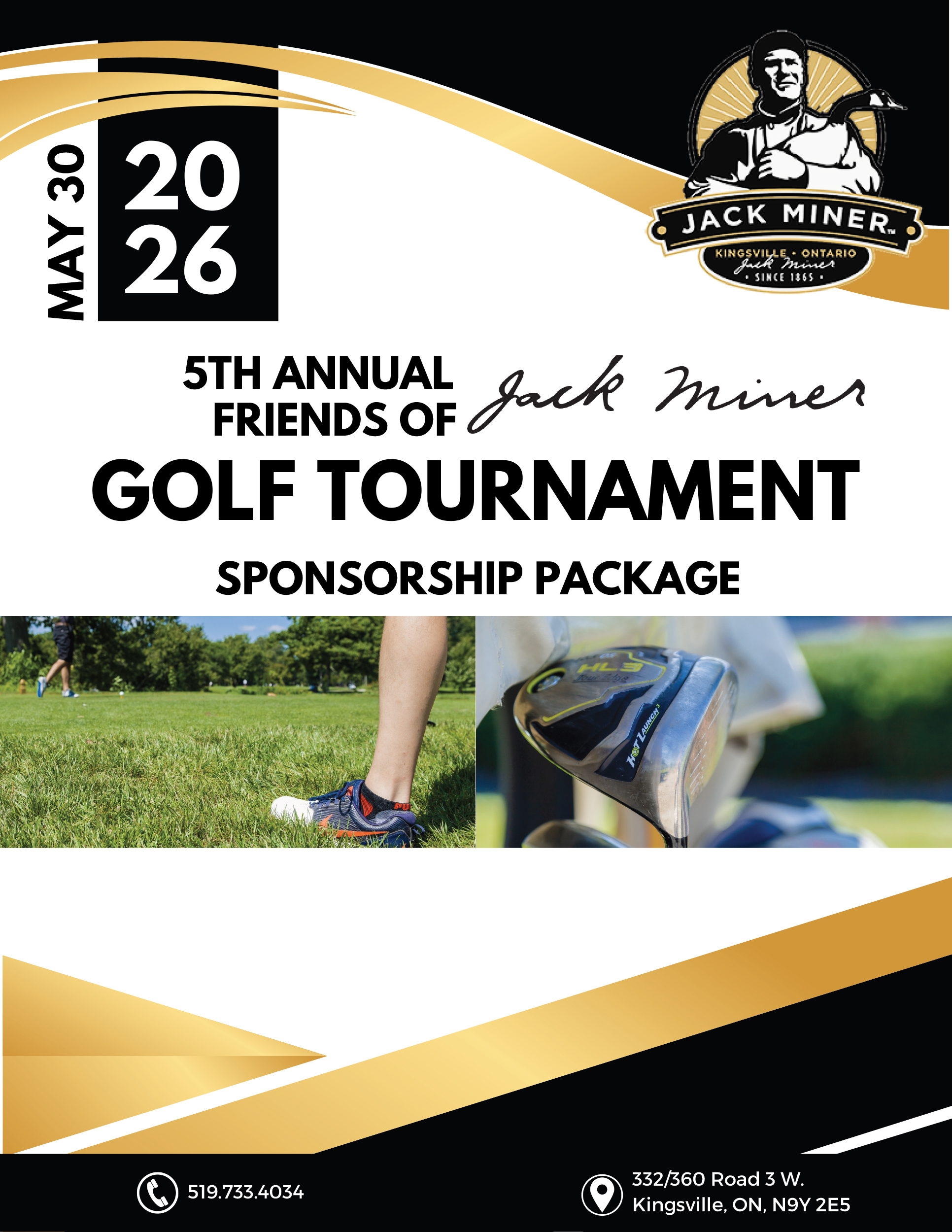 We are looking forward to hosting our 5th Annual Friends of Jack Miner Golf Tournament on Saturday, May 30th, 2026, at the Kingsville Golf & Country Club.
